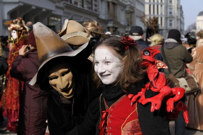 Fabelhafte Wesen, schön maskierte Menschen. Jedes Jahr kurz vor Karneval findet in Hamburg der Maskenzauber statt.
