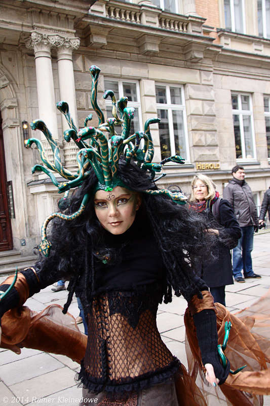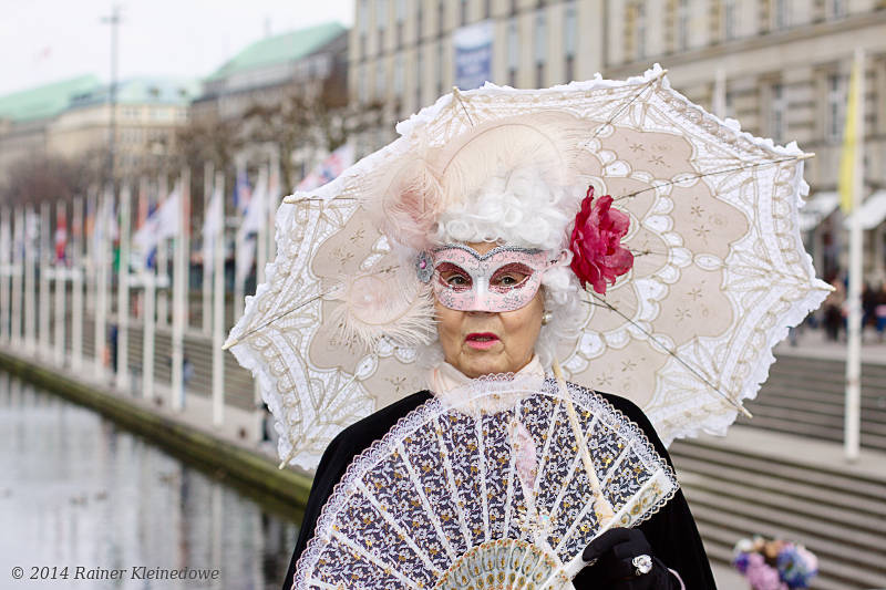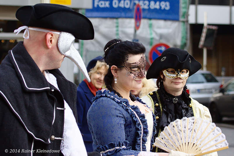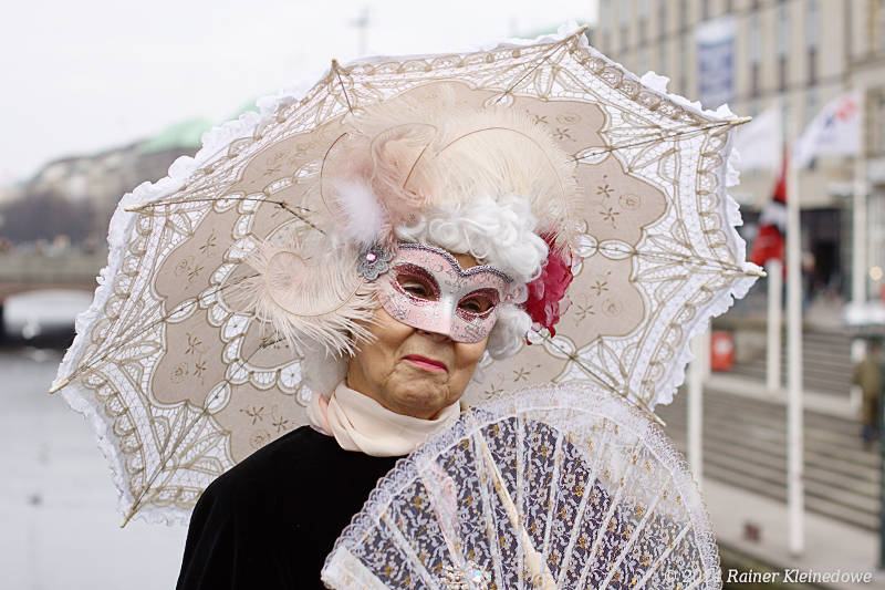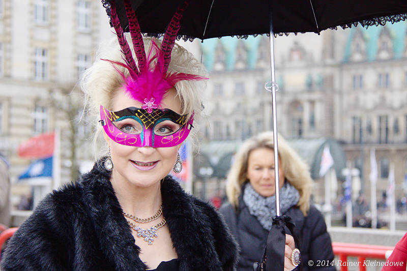 Aufwändig gefertigte Masken und Kostüme verzauberten die Passanten und Fotografen in den Collonaden und Alsterarkaden. Leider bekommt man nicht von jedem Teilnehmer ein Bild.