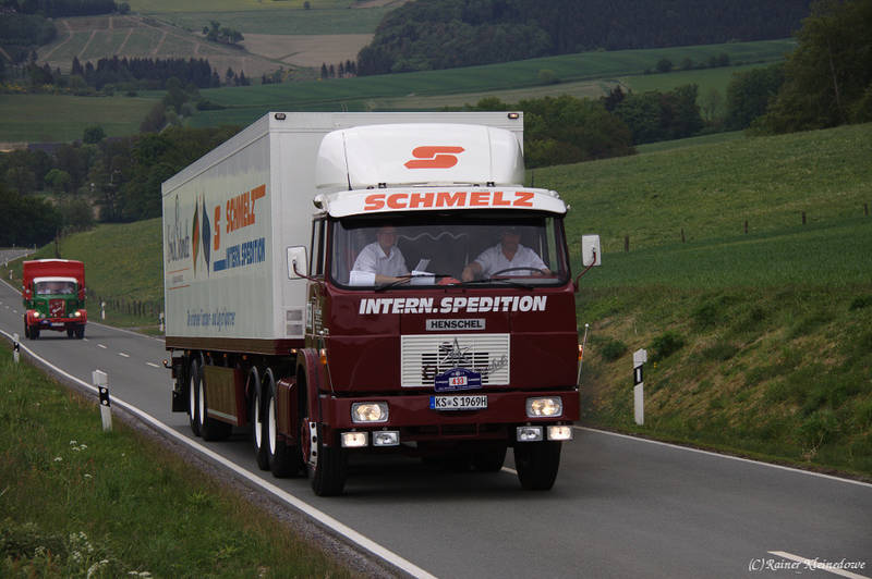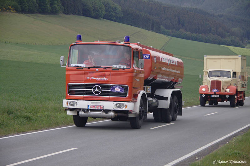 Eines von vielen Highlights bei den LKW war ein Mercedes-Benz LPS 1620 mit Tankauflieger.sowie ein Magirus-Deutz 126D 11 mit Ackermann-Aufbau und passendem Anhäger.