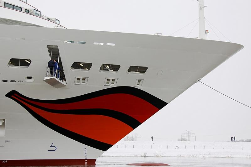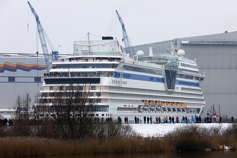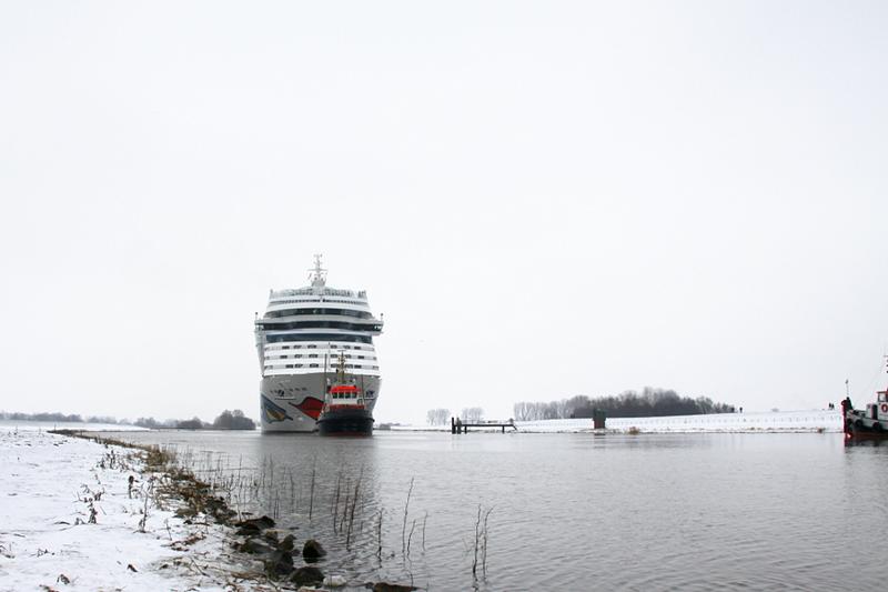 Die AIDAblu wurde am 15.01.2010 von der Meyer-Werft in Papenburg durch die Ems nach Emden überführt.